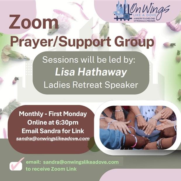 1st Monday evening of each month at 6:30 pm ***Connect via Zoom Link*** Email sandra@onwingslikeadove.com to request an invitation