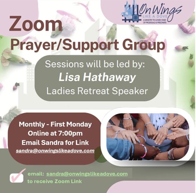 1st Monday evening of each month at 7:00 pm ***Connect via Zoom Link*** Email sandra@onwingslikeadove.com to request an invitation